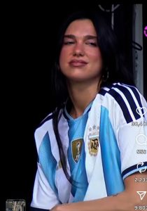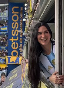 Arnavut asıllı dünyaca ünlü İngiliz sanatçı Dua Lipa, Güney Amerika Turnesi kapmasında Arjantin’de dünyanın bir numaralı derbisi Boca Juniors ile River Plate maçını izledi. Büyük ilgi gören İngiliz sanatçı, Arjantin Milli takım formasıyla locada yer aldı ve zaman zaman kafasını dışarıya uzatarat Boca taraftarlarına el salladı. Dua Lipa, Filistin ve Gazze’ye desteği ile de tanınıyor.