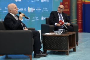 Erzurum Büyükşehir Belediye Başkanı Mehmet Sekmen, Doğu Anadolu Erzurum 7. Kitap Fuarı’nda düzenlenen söyleşi programına katıldı. Büyükşehir Belediyesi’nin ev sahipliğinde Recep Tayyip Erdoğan Fuar Merkezi’nde gerçekleştirilen programın moderatörlüğünü Erzurum Kent Konseyi Başkanı Hüseyin Tanfer yaptı. Söyleşiye öğrenciler, akademisyenler, yazarlar ve çok sayıda vatandaş yoğun ilgi gösterdi. Programın açılışında konuşan Tanfer, Erzurum’un kitap fuarı serüvenini anlatarak, geçmişte Yakutiye Kent Meydanı’nda çadırlarda yapılan organizasyonların bugün modern bir tesisle buluşmasını önemli bir gelişme olarak kaydetti. Tanfer, “On yıl önce yağmur altında kitapların ıslandığı günlerden bugün Türkiye’nin en nitelikli fuar merkezlerinden birine ulaştık. Bu güçlü altyapı, Büyükşehir Belediye Başkanımız Mehmet Sekmen’in vizyoner yaklaşımının eseridir” ifadelerini kullandı.