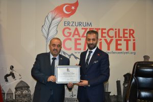 Tüm Emlak Danışmanları Birliği Erzurum İl Temsilcisi Fatih Sağsöz, EGC’yi ziyareti esnasında Emlak Sektörünün saygınlığına yönelik yaptığı haber çalışmalarından ötürü EGC Başkanı ve Yenigün Gazetesi Sorumlu Yazı İşleri Müdürü Mehmet Musa Çakır’a TEDB Akademi Kurulu Mazbatası takdim etti.