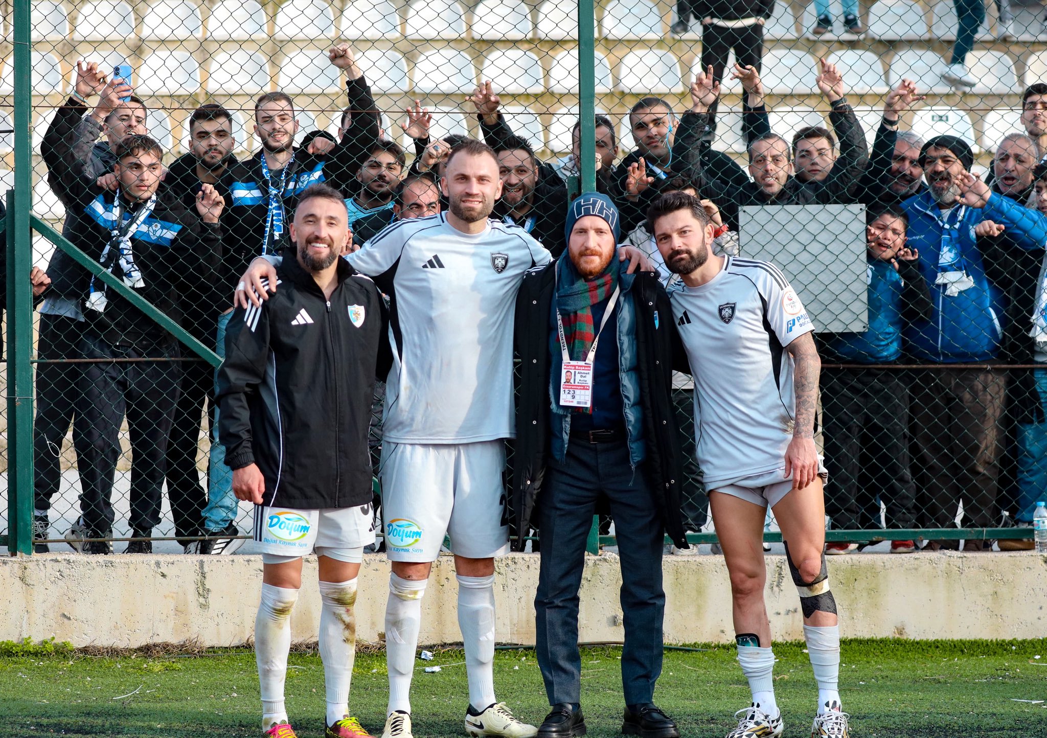 Erzurumspor Başkanı Ahmet Dal, her ortam övgüler yağdırıp teşekkür ettiği kaptanlar ile Bandırma zaferi sonrasında da objektiflere poz verdi.