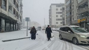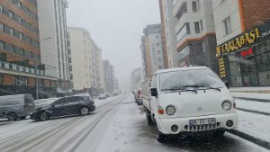 Sürücüler, karla kaplanan park halindeki araçlarını fırçalarla temizledi.Sürücü ve yayaların ilerlemekte güçlük çektiği kentteki bazı noktalarda ise trafikte aksamalar yaşandı.