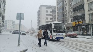 Erzurum’da beklenen kar yağışı bugün öğle saatlerinde yağmaya başladı. Kar yağışına hazırlıksız yakalanan vatandaşlar zor anlar yaşadı. Adeta beş dakika şehrin beyaz örtüye bürünmesini sağlayan kar yağışı günlük yaşamı da olumsuz etkiledi.