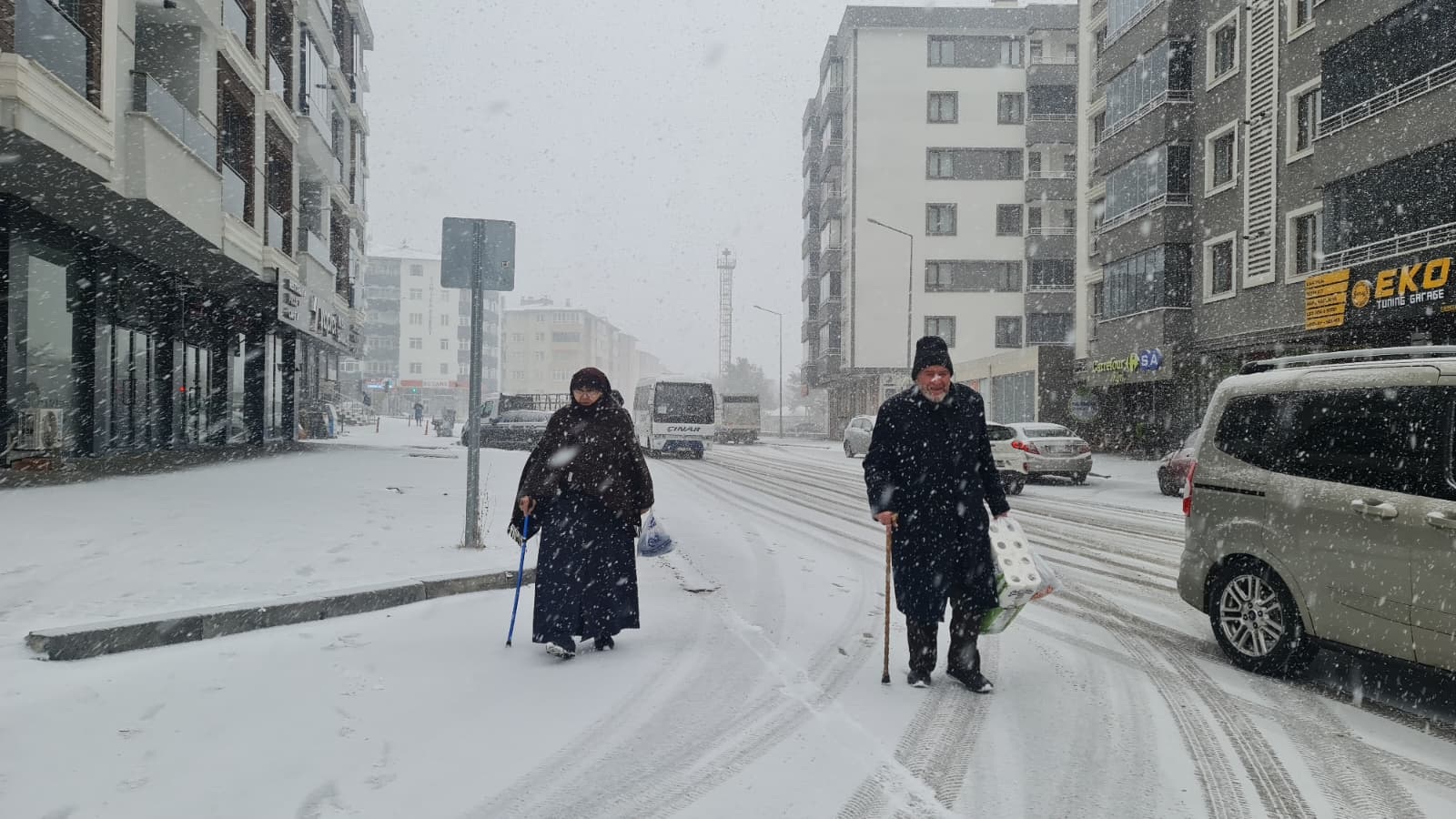 …Ve Erzurum’da beklenen kar yağışı gerçekleşti. Beş dakikada Erzurum beyaz örtüsüne büründü.