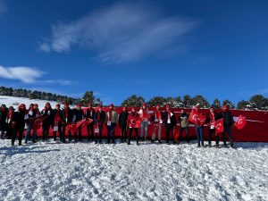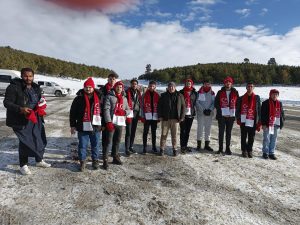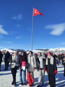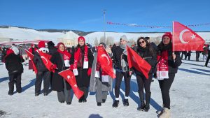 Kent merkeziyle Sarıkamış ilçesinden otobüslerle zirveye ulaşan katılımcılar, Türk bayraklarıyla yürüyerek toplanma alanına geldi. Vatandaşlar, Kızılçubuk bölgesinde şehitler anısına yapılan kardan heykellerin önünde fotoğraf çektirdi.
