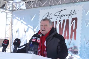 “Onlar da bu organizasyonlarda çelik yürekleriyle, aslan yürekli askerlerimizle bizlere destek veriyorlar. İşte bu nedenle bu vatan için canını feda eden şehitlerimizi rahmetle anıyoruz ve her seferinde gençlerimize bunu anlatmaya devam edeceğiz. ‘Mavi Vatan’ı, ‘Yeşil Vatan’ı, şehitlerimizi, gazilerimizin kahramanlıklarını anlatacağız ve onlara milli şuuru, ülkeyi ve vatanı sevmeyi, özgüveni, güçlü Türkiye’yi anlatacağız. Bu nedenle Aile ve Sosyal Hizmetler Bakanlığı ile beraber burada yaptığımız organizasyonlar için onların işbirliklerine teşekkür ediyoruz. Birlikte güçlü Türkiye için çalışmaya devam edeceğiz. Ordumuzla, milletimizle, gençlerimizle, Sarıkamış şehitleriyle ve ülkemizle gurur duyuyoruz. Her şey güçlü Türkiye için diyoruz ve hep beraber şehitlerimizi rahmetle anıyoruz. Yine burada olacağız, Sarıkamış’ta olacağız, Çanakkale’de olacağız, vatan için çalışmaya devam edeceğiz.”