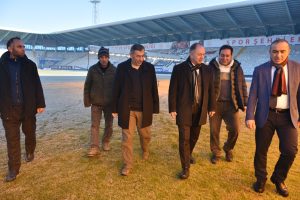 Yaz mevsiminde hibrit çim zemine dönüştürülen stat, altta ısıtma sistemi özelliği sayesinde de kış sezonunda bile yeşil olma özelliğini koruyor. Saha zeminin dondurucu soğuklardan olumsuz etkilenmemesi için de yoğun bir çaba gösteren stat personeli, zemine adeta gözü gibi bakarken, Gençlik ve Spor İl Müdürü Levent Çakmur da, hemen hemen her sabah stada giderek zemin koruma çalışmalarını yakından takip ediyor.