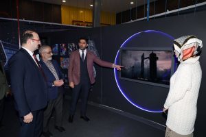 Prof. Dr. Ahmet Hacımüftüoğlu, Bilim Erzurum merkezinde TÜBİTAK’ın hazırladığı uzay sergisini gezdi ve merkezdeki atölyeler hakkında bilgi aldı. Rektör, Türkiye’nin insanlı uzay misyonunun gençlere ilham verdiğini vurguladı.
