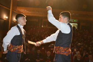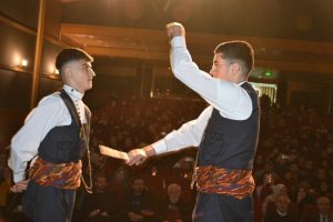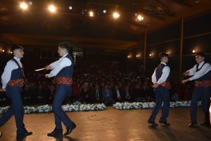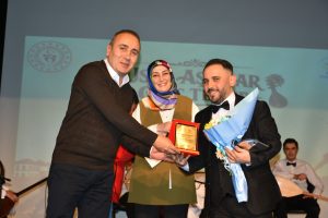 ‘Yüzyılların ardından kopup gelen bir vakar, Kahramanlık, yiğitlik, erlik destanıdır bar.’ Sözleri eşliğinde bar şiiri ile sahneye çıkan Aziziye Gençlik Merkezi Bar Ekibi, Bar eğitmeni Oktay Toktaş nezaretinde bar gösterisi yaparken, dört kişi aynı anda hançer barı oynayarak dikkatleri üzerlerine çektiler ve ayakta alkışlandılar. Güzel gösterinin ardından halk oyunları eğitmeni Oktay Toktaş’a Büyükşehir Belediyesi Kültür Daire Başkanı Ergün Engin plaket takdim etti.