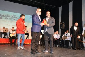 ‘Usta Aşıklar Genç Teller’ buluşmasında Koro Şefi Kerem Gürler yönetimindeki Aziziye Gençlik Merkezi Müzik Kulübü, koro ve solo gösterisi yaptı. Geleceğin ses ve saz sanatçıları, yurdun 7 bölgesinden türküler ve ezgilerle kulakların pasını sildiler. Erzurum GSİM Gençlik Hizmetleri Müdürü Metin Günay, koro şefi Kürem Gürler’e bu güzel konser için plaket verdi.