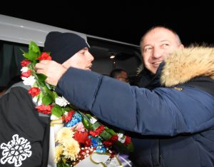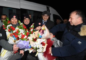 Babaları Erzurum Bölge Adliye Mahkemesi Başsavcısı Ünal Bingül anneleri Nesrin Kaya Bingül ile birlikte uçaktan inen ikizleri, Erzurum Cumhuriyet Başsavcısı Adem Aydemir, Erzurum Teknik Üniversitesi Rektörü Prof.Dr. Bülent Çakmak, Hazine ve Maliye Eski Bakan Yardımcısı Cengiz Yavilioğlu, Gençlik ve Spor İl Müdürü Levent Çakmur, GSİM Sicil Lisans Şube Müdürü Hakan Kaya, Spor Şube Şefi Ufuk Purutçu ile protokol ve vatandaşlar karşıladı.