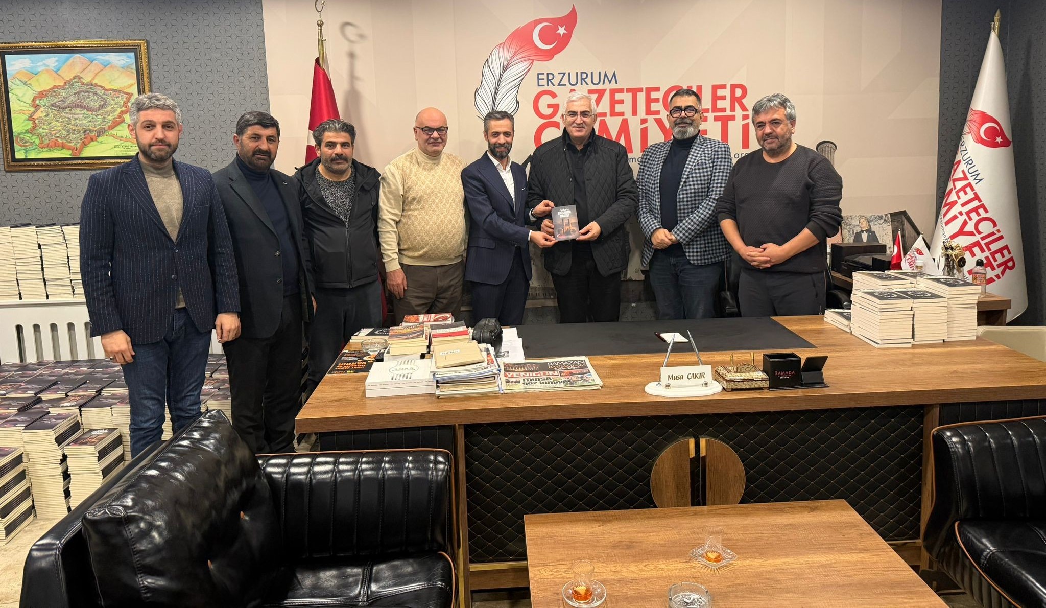 Başkan Çakır, Ramazan ayı boyunca devam etmesi planlanan sohbet programlarında farklı konukların ağırlanacağı bildirdi. Samimi söyleşinin ardından EGC Başkanı Mehmet Musa Çakır, Kamuoyunda ‘Kitap Kurdu’ olarak da anılan AK Parti Erzurum Milletvekili Mehmet Emin Öz’e ‘Anılarla Erzurum Basını’ adlı kitabı hediye etti.
