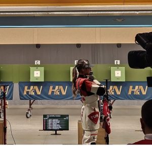 Erzurum Gençlik Spor Kulübü ve TOHM Sporcusu Damla Köse, kadınlar 10 metre havalı tüfek solo elemelerinde topladığı 56 puanla yarışma rekoru kırarak altın madalya maçına çıkmaya hak kazandı.