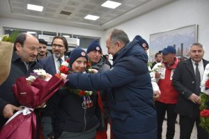 Erzurum Gençlik ve Spor İl Müdürü Levent Çakmur da, çiçek vererek karşıladığı Aliye Zeynep Bingül ile Muhsin Murat Bingül ve antrenörleri Osman Darel ile Elkamer Darel’i kutladı. Çakmur, “İki özel sporcumuz her zaman bizim için birer gurur kaynağı olmaya devam ediyorlar” dedi.