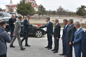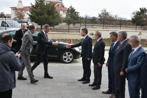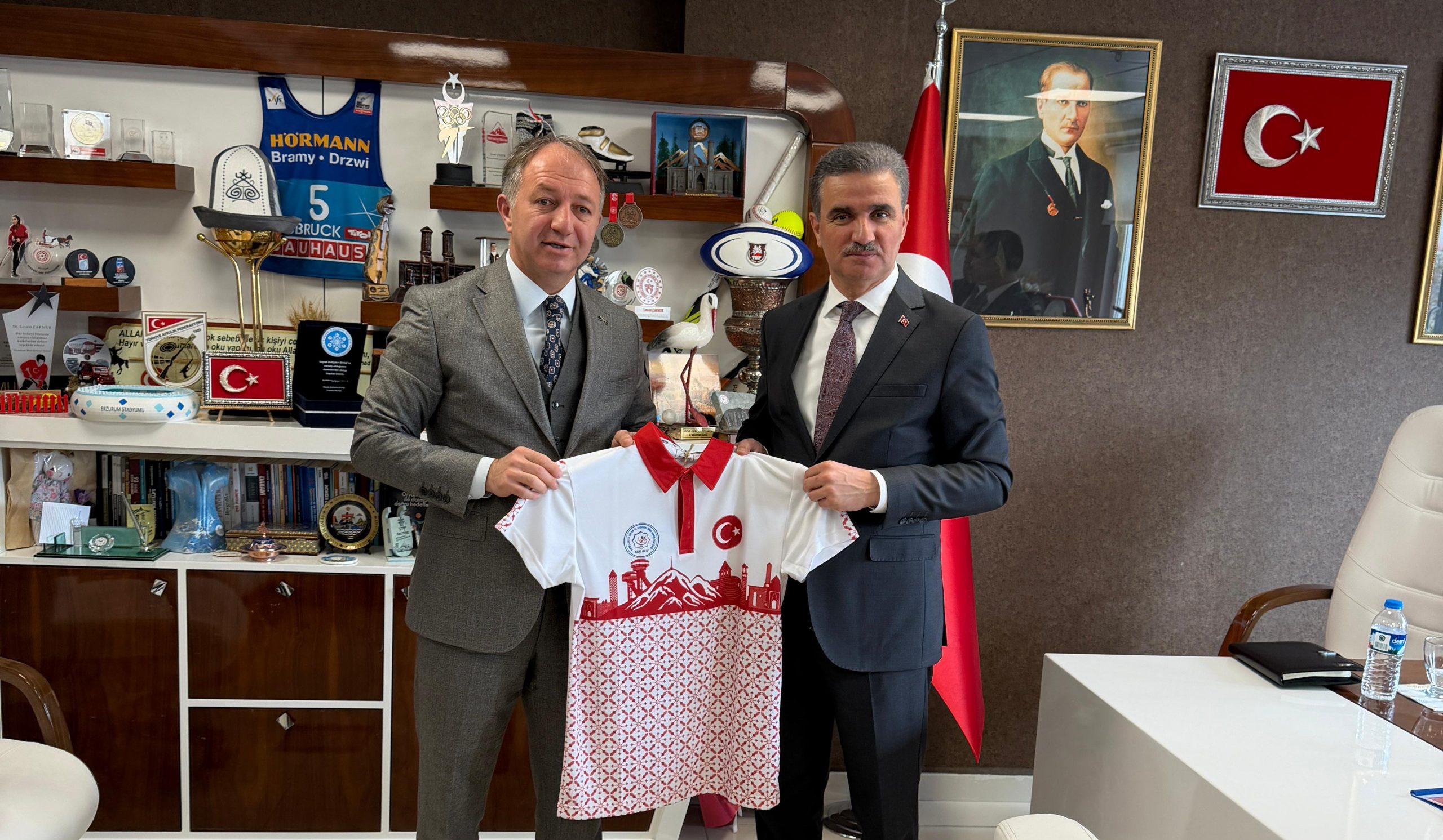 Erzurum Gençlik ve Spor İl Müdürü Levent Çakmur, Vali Aydın Baruş’a Erzurum temalı forma hediye etti.