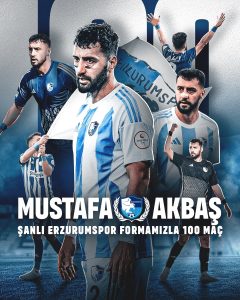 Mustafa Yumlu ve Eren Tozlu’nun ardından Mustafa Akbaş da Erzurumspor’da 100’ler kulübüne girdi. Keçiören maçında 100’üncü maçına çıkan deneyimli savunmacı, Amed mücadelesinde Mavi-beyaz forma ile 101. Sınavına çıktı.