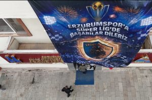 Bodrum deplasmanında şampiyon olarak Süper Lig’e çıkan Erzurumspor’a bir destek de ESKİ’den geldi. Erzurum Su ve Kanalizasyon İdaresi, yeni hizmet binasına astığı Mavi-beyaz Erzurumspor bayrağı ile binasını süsledi.