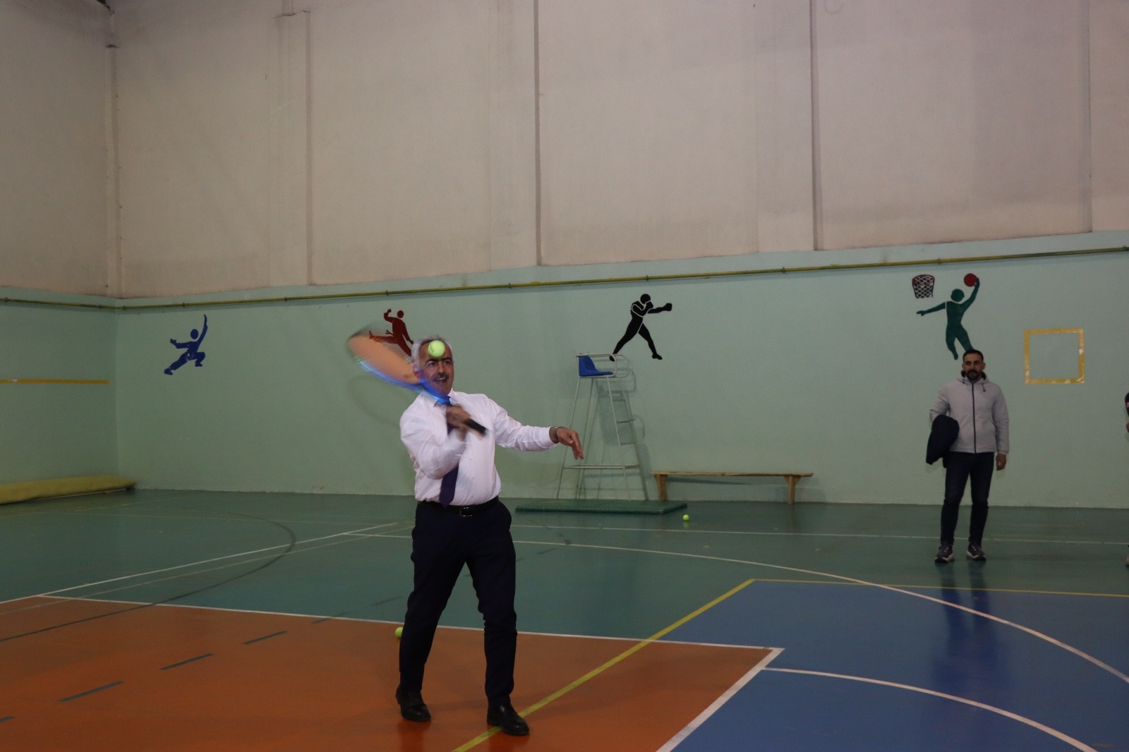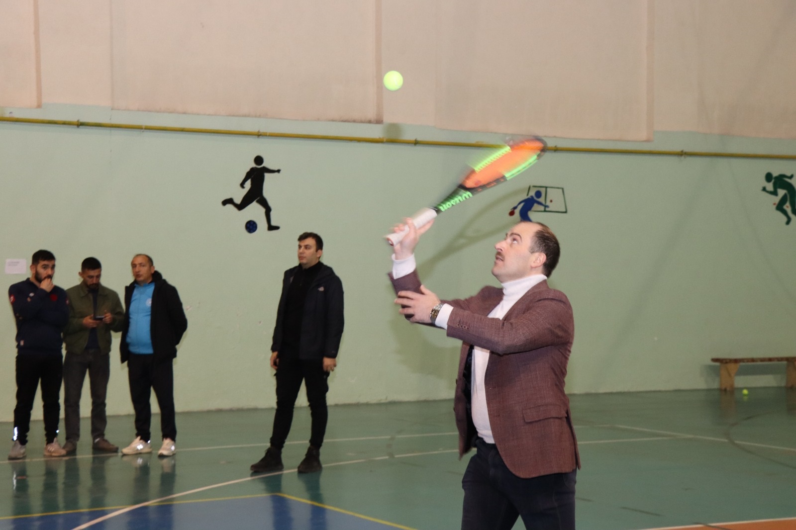 Oltu Gençlik ve Spor İlçe Müdürlüğü antrenörlerinden Abdullah Bora yönetiminde organize edilen tenis turnuvasına protokol da yakın bir ilgi gösterdi. 18 sporcunun kıyasıya mücadelesini izleyen Oltu Kaymakamı Mustafa Çelik, Belediye Başkanı Adem Çelebi ile Gençlik ve Spor İlçe Müdürü Ömer Bektaş da tribünden salona inerek tenis oynadı.