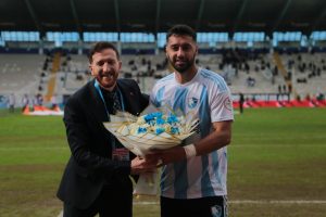 Trendyol 1. Ligde zirveyi zorlayan Erzurumsporun savunmasındaki deneyimli stoped Mustafa Akbaş onurlandırıldı.