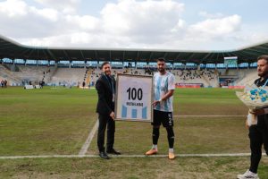 Kulüp başkanı Ahmet Dal. “Takım kaptanlarımızdan Mustafa Akbaş, şanlı formamızla 102. Maçına çıktı. Önce Ankara, sonra Diyarbakır deplasmanlarında olduğumuz için Mustafa’yı kendi Stadımızda, kendi taraftarımız önünde onurlandırmak istedik. Anlı şanlı formamız altında nice başarılar diliyorum” dedi.