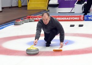 Erzurum Gençlik ve Spor İl Müdürü Levent Çakmur, lisanslı curlingçi olarak Eğitimgücü Spor Kulübü’nün başarısı için mücadele ediyor.