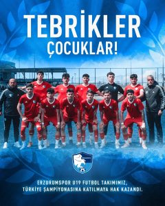 Geçtiğimiz sezon şampiyon olarak Türkiye finallerine giden Erzurumspor U19 takımı, bu sezon ligin bitimine 2 maç kala Türkiye finallerini garantiledi. Alagöz Holding Iğdır FK’yı Muhammet Karahan ve Taha Kars’ın iki golüyle deviren Teknik Patron Alpaslan Topcu’nun talebeleri alkış aldı.