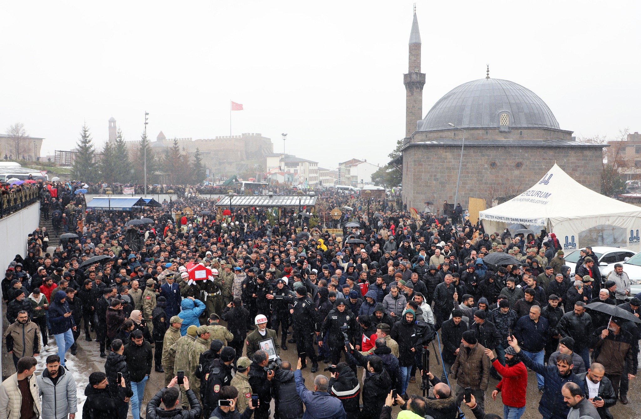 Hava soğuktu, fırtına vardı. Karla karışık yoğun bir yağış vardı. Ama binler Narmanlı Camiine akın etti. Dadaşlar, şehit Piyade Uzman Çavuş Nurettin Tokyürek’e son görevini yerine getirdi. Erzurumlu şehit, göz yaşları, dualar ve tekbirlerle son yolculuğuna uğurlandı.