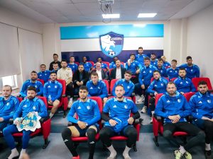 Erzurumspor’un maçlarını kaçırmayan ve Mavi-beyazlı takıma olan tutkunluğu ile bilinen Atatürk Üniversitesi Rektörü Prof. Dr. Ahmet Hacımüftüoğlu, Sakarya deplasmanı öncesinde Teknik Heyet ve futbolculara baklava ikram ederek moral aşıladı.