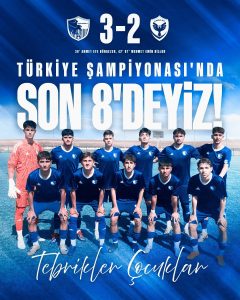Elazığ’da oynanan ve Elazığ’lı futbolseverlerin desteğini alan Temsilcimiz 90+7 Taha Kars’ın ayağından bulduğu golle müsabakayı 1-0 kazanarak Türkiye’de son 8 takım arasına ismini yazdırdı. Tur atlayan ve Türkiye şampiyonluğu öncesinde son 8’e kalan Erzurumsporlu futbolcular ve teknik heyet büyük bir coşku yaşadı.