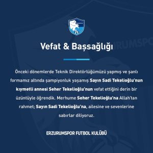 Erzurumspor kulübü de sosyal medya resmi hesaplarından taziye mesajı yayınlayarak Tekelioğlu ailesine başsağlığı diledi.