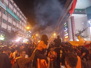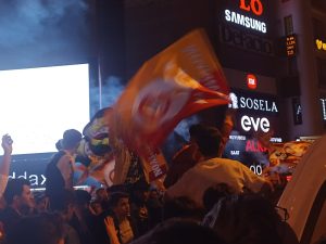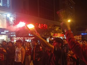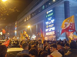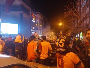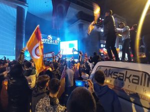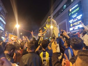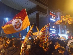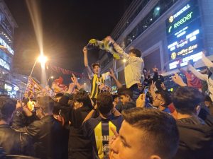 Cumhuriyet Caddesindeki kutlamalarda Sarı-kırmızılı taraftarar, Fenerbahçe’yi tabuta koydular.
