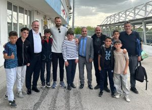 Erzurumspor’un efsane futbolcusu ve teknik direktörü olan ve bu sezon Trabzon 1461 FK’yı çalıştıran Muzaffer Bilazer ile Mavi-beyazlıların kaptanı Mustafa Yumlu tribünden minik yüreklerin büyük mücadelesini izledi.