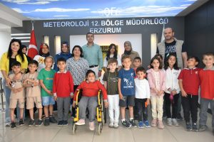 Erzurum Yakutiye Celal Akın İlkokulu 1/D Sınıfı öğrencileri Meteroloji 12. Bölge Müdürlüğü’ne konuk olarak hava tahmin balon uçurma faaliyetini yerinde izlediler.