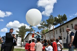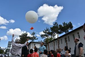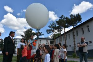 Meteoroloji 12. Bölge Müdürlüğü’nün her gün saat 14.30’da gerçekleştirdiği hava tahmin balon uçurma faaliyetine katılan minik öğrenciler Meteoroloji Bölge Müdürlüğü Birim Sorumlusu Ahmet İlker Dokuyucu ile birlikte balon uçurdular. Bölge Müdürü Ömür Demirgüneş’in de katıldığı faaliyette dev balon gökyüzüne bırakıldı.