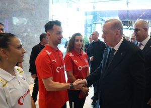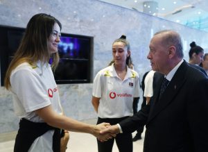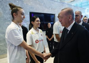 Voleybol Milletler Ligi’nde7’de 7 yaparak yoluna namağlup devam eden A Milli Kadın Voleybol Takımı, İstanbul’da, Cumhurbaşkanı Recep Tayyip Erdoğan tarafından kabul edildi. Gençlik ve Spor Bakanı Dr. Osman Aşkın Bak ile Türkiye Voleybol Federasyonu Başkanı Mehmet Akif Üstündağ’ın da hazır bulunduğu kabulde, Cumhurbaşkanı Erdoğan, Filenin Sultanları’nın tüm oyuncularıyla tek tek tokalaşarak sohbet etti. Cumhurbaşkanımız Erdoğan sporcularımızın maçlardaki performanslarıyla ilgili yorumlarını yaptığı özel sohbette kendilerine aktardı. Başantrenör Daniele Santarelli’yi kulüp takımında ve milli takımımızda elde ettiği başarıları takip ettiğini ifade ederek tebrik etti.