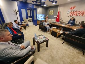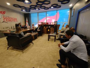 Beraberinde İl Kadın Kolları Başkanı Emine Yurt ve Medya Tanıtım Başkanı Hakan Demir ile birlikte EGC’yi ziyaret eden İl Başkanı İşleyen, EGC Başkanı Çakır ve yönetim kurulu üyeleriyle sohbet etti.