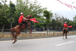 Erzurum bugün bir kez daha 106 yıl öncesini yaşadı. Türkiye Cumhuriyeti’nin Kurucusu Kurtuluş Savaşanın Başkumandanı Gazi Mustafa Kemal Atatürk’ün Erzurum’a gelişinin 106’ncı yıl dönümü, törenlerle kutlandı. Büyük coşkuya sahne olan kutlamalarda atlı ciritçiler, halk oyunları ekipleri ve mehteran gösterisi kutlamalara renk kattı.