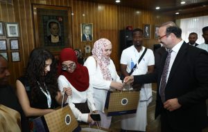 Atatürk Üniversitesi ile Yunus Emre Enstitüsü iş birliğinde düzenlenen 2025 Türkçe Yaz Okulu kapsamında Erzurum’a gelen yabancı öğrenciler, Rektör Hacımüftüoğlu’nu makamında ziyaret etti.