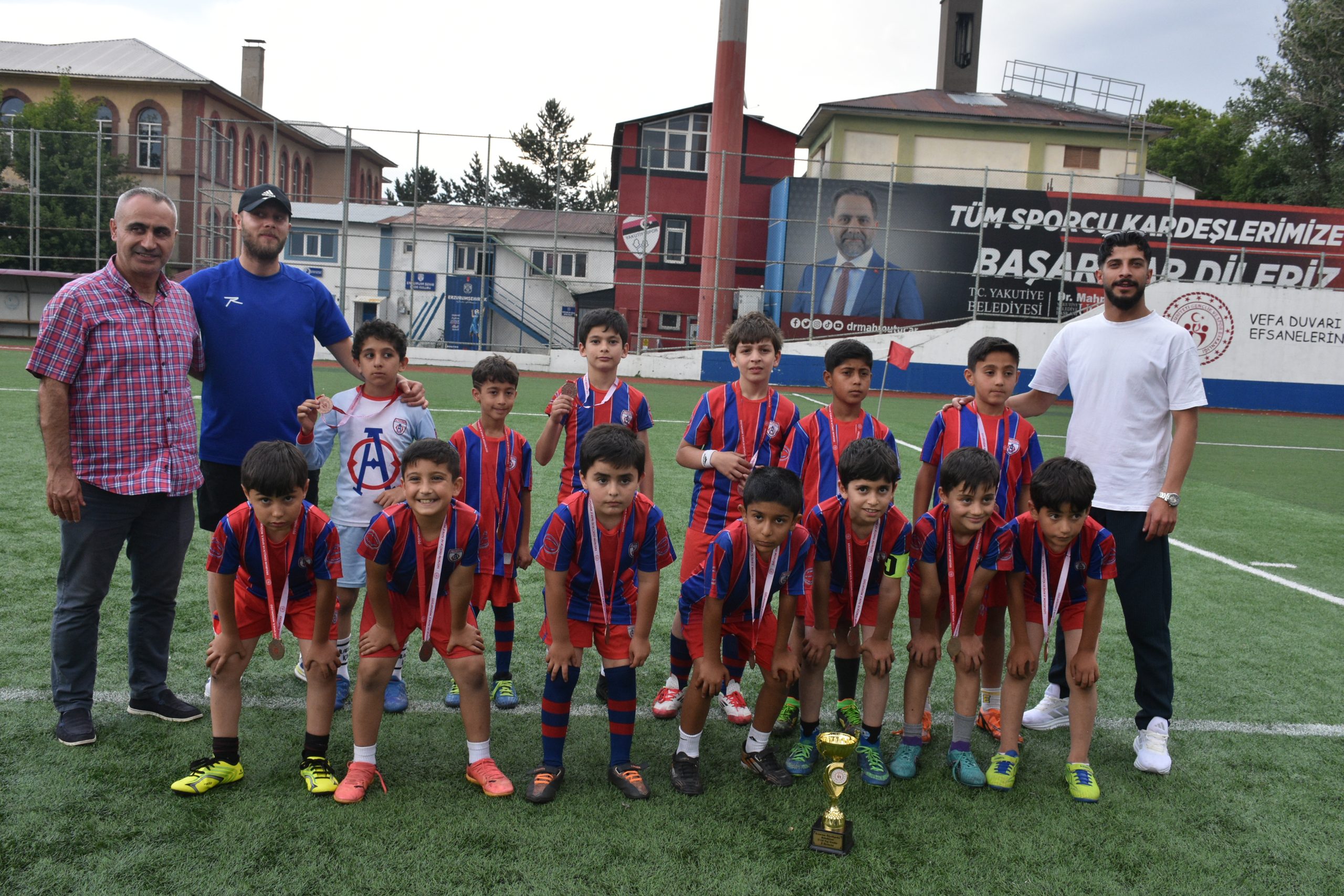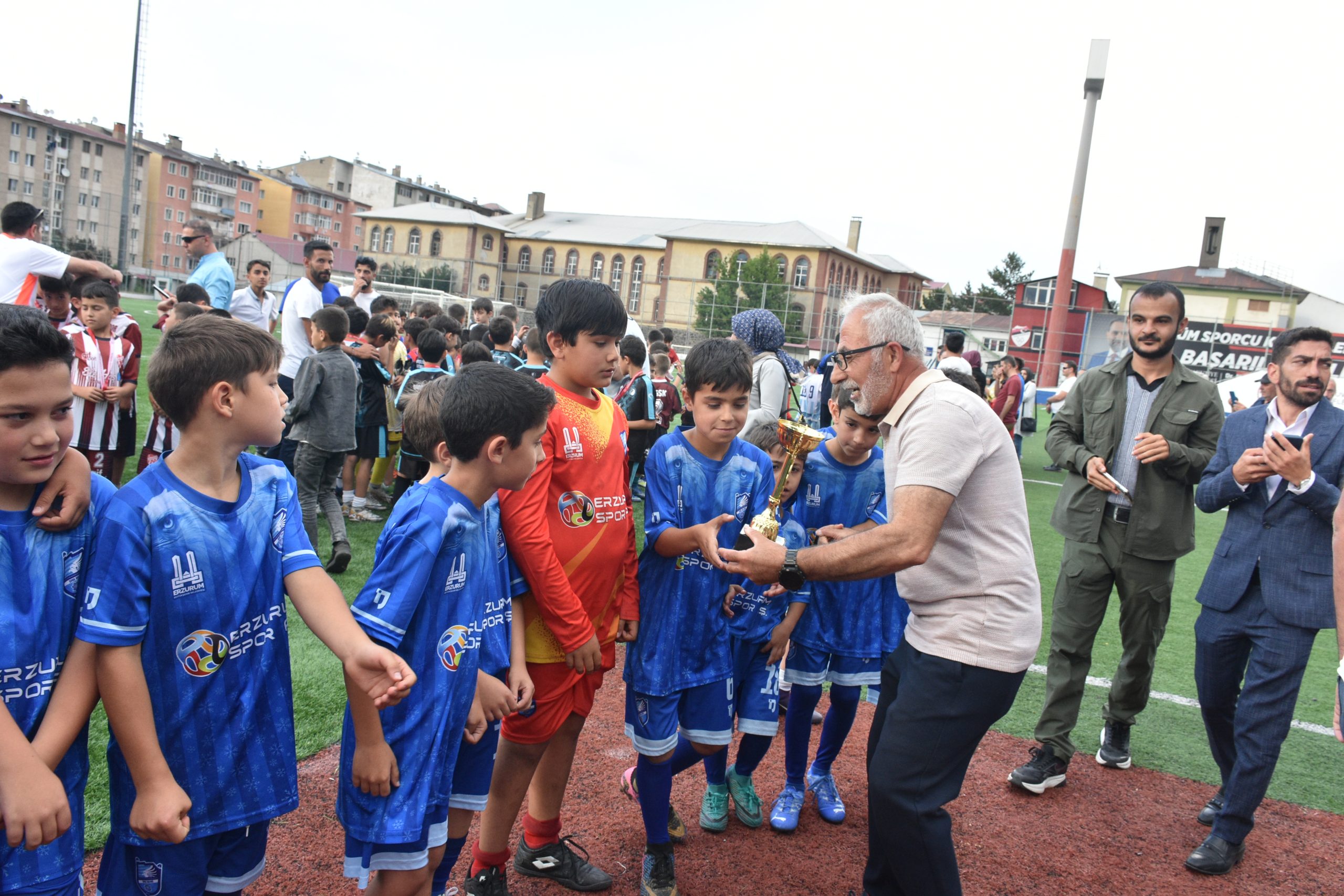 Erzurum GSİM Gençlik Faaliyetleri Şube Müdürü Güngör Şenses, TFF Erzurum Bölge Müdürü Mehmet Akif Fencioğlu, TÜFAD Yönetim Kurulu Üyesi Mustafa Şenel, TÜMSAD Şube Başkanı Muharrem Baydan ile 3 Temmuz Stadı Tesis Amiri İhsan Topaloğlu ve Sağlık Memuru Ömer Karali takımlara kupalarını verdiler.
