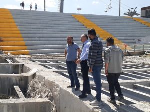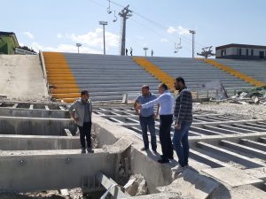 Kayakla Atlama Kuleleri’nde zemin tadilatı sonrası ahşap pist çalışmaları tüm hızla sürüyor. Erzurum Gençlik ve Spor İl Müdürü Levent Çakmur, çalışmaları yakından takip ediyor.