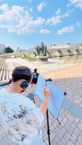 “Bir Tuval Bir Dünya Makedonya” Projesi kapasında Gençlik ve Spor Bakanlığı’nın destekleriyle Gençlik Liderleri Serdar Durak ile Fırat Ceyhan nezaretinde Makedonya’yı gezen Gençler, resmettikleri çalışmaları sergilemeyi planlıyor.