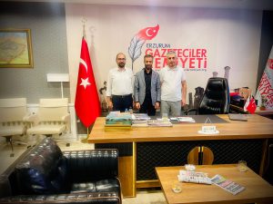 Basın İlan Kurumu (BİK) Bölge Müdürü Tahsin Şahin ile İletişim Başkanlığı Erzurum Bölge Müdürü Recep Küçükece, EGC Başkanı Mehmet Musa Çakır’ı ziyaret etti.