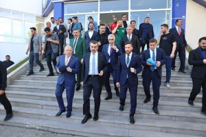 EVYAP İbrahim Hakkı Fen Lisesi’nin açılışı için memleketine gelen Milli Eğitim Bakanı Prof. Dr. Yusuf Tekin, şehrin gözbebeği Erzurumspor’u ziyaret ederek, güven tazeleyen Kulüp Başkanı Ahmet Dal’a “Hayırlı olsun” dileklerini iletti.