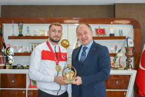Erzurum Gençlik ve Spor İl Müdürü Levent Çakmur, 14 yıl sonra büyükler kategorisinde Dadaşlar diyarına Türkiye Boks Şampiyonluğu madalyasını getiren Gökdeniz Yağar ile Milli takıma davet edilen sporcuları ödüllendirdi.