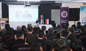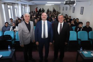 Lise yıllarından başlayarak akademik sürecine, yurt dışı deneyimlerinden bilim dünyasındaki çalışmalarına kadar geniş bir perspektifte kariyer yolculuğunu anlatan Rektör Hacımüftüoğlu, öğrencilere kararlılığın, disiplinli çalışmanın ve vizyon sahibi olmanın önemini vurguladı. “Bugün bulunduğum noktaya gelmemde, lise yıllarımda edindiğim temel değerlerin büyük katkısı oldu. Her birey kendi hayat hikayesini yazmalı ve hedefleri doğrultusunda azimle çalışmalıdır” diyerek öğrencilere ilham kaynağı olan Rektör Hacımüftüoğlu şunları söyledi: “Bir dönem eğitim gördüğüm okulda tekrar bulunmaktan ve bu okulun bir mezunu olarak sizlerle burada olmaktan büyük bir mutluluk ve onur duyuyorum. Eğitim hayatım boyunca edindiğim tecrübeleri sizlerle paylaşmak benim için çok değerli” dedi.