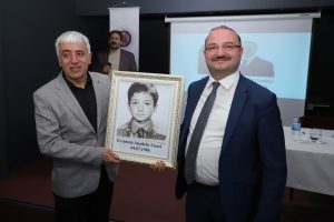 Atatürk Üniversitesi (ATAUNİ) Rektörü Prof. Dr. Ahmet Hacımüftüoğlu, Erzurum Merkez Anadolu Lisesi Mezunları Derneği tarafından düzenlenen Kariyer Söyleşisi programına konuk oldu. Merkez Anadolu Lisesi öğrencileri ile sohbet eden ve kariyer planlaması hakkında öğrencilerin sorularını yanıtlayan Rektör Prof. Dr. Hacımüftüoğlu’na anlamlı bir sürpriz yapıldı. Merkez Anadolu Lisesi Müdürü Hikmet Polat’ın 04 Nisan 1986 yılında Prof. Dr. Ahmet Hacımüftüoğlu’nun liseye kayıt yaptırmak için çekildiği vesikalık fotoğrafı kendisine hediye edince duygu yüklü anlar yaşandı. Atatürk Üniversitesi Rektörü Prof. Dr. Ahmet Hacımüftüoğlu,bir anda maziyi hatırlarken, gözleri doldu ve duygu yüklü anlar yaşadı.