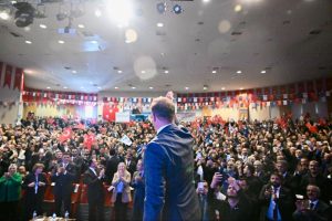 Anahtar Parti (AP) lider Yavuz Ağıralioğlu, Partisinin il başkanlığı tarafından düzenlenen halk buluşmasına katılmak için geldiği Erzurum’da büyük bir ilgi gördü. Dadaşlar diyarında kalabalık tarafından karşılanan ve konvoyla şehir turu atan AP Genel Başkanı Yavuz Ağıralioğlu, Anahtar Parti İl Başkanı Yücel Ahmet İşleyen, il teşkilatı, ilçe teşkilatları ile bir çok ilden katılan partililere Necip Fazıl Kısakürek Kültür Merkezinde hitap etti. Tıklım tıklım dolu salonda konuşan Ağıralioğlu, “Ben hükümete sitem hattını artık boşaltıyorum. Kem söz etmiyorum. Beddua etseydim bunlara ne derdim? ‘Allah sizi Öcalan’a yol arkadaşı etsin’ derdim. Bizim beddua etmemize gerek yok, kendileri yol arkadaşı etmişler Öcalan’ı… Tayyip Bey’in önüne koyuyorlar prompter cihazı, yazıyorlar ona hikmetli sözler. O da zannediyor ki memleket prompter cihazından ibarettir. Memleket, size metin yazanların size göstermek istediğinden daha zor durumdadır. Prompter cihazlarınızı kaldırın milletinizi göreceksiniz” diye konuştu.