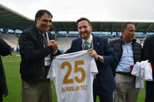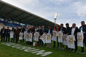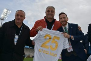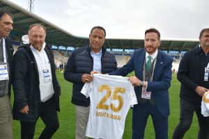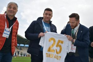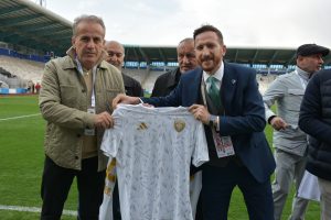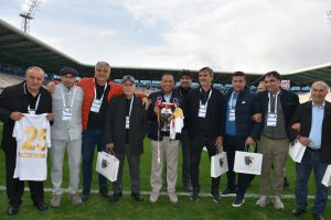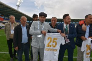 Erzurumspor’un efsaneleri maç öncesinde sahaya davet edildi. Erzurumspor Başkanı Ahmet Dal, efsane isimlere forma ve plaket hediye ederek onları onurlandırdı. Başkan Dal’ın bu hareketi alkış alırken, taraftarlar ‘Büyük Başkan’ tezahüratı yaptı.