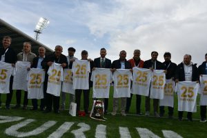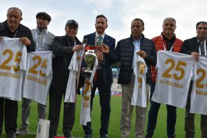 Dadaşlar diyarına ilk kez Süper Lig Sevinci yaşatana efsane Erzurumspor’un efsane kadrosuna Mavi-beyazlı Kulübün Başkanı Ahmet Dal, bugün oynanan Ümraniye maçı öncesinde jest yaptı. Efsaneleri bir kez daha Kazım Karabekir Stadı’nda çıkaran Dal, teknik heyet, yönetici ve futbolcuları ödüllendirdi.