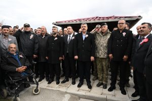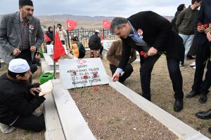 Vali Çiftçi ve beraberindekiler, törenin sonunda Kuran okuyan şehit yakınlarına başsağlığı dileyerek mezarlara karanfil bıraktı.