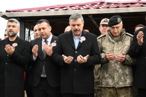 Saygı duruşunda bulunması ve İstiklal Marşı’nın okunmasının ardından tören mangası tarafından saygı atışı yapıldı. Kur’an-ı Kerim tilaveti sonrası İl Müftüsü Yaşar Çapçı tüm şehitler için dua etti.